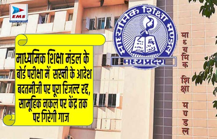 भोपाल । आगामी बोर्ड परीक्षाओं को निष्पक्ष और पारदर्शी बनाने के लिए माध्यमिक शिक्षा मंडल ने नकल के मामलों पर कड़े निर्देश जारी किए हैं। परीक्षा के दौरान नकल करते पकड़े जाने के साथ यदि कोई परीक्षार्थी शिक्षक, केंद्राध्यक्ष या परीक्षा ड्यूटी में लगे कर्मचारियों से बदतमीजी या उद्दंड व्यवहार करता है, तो उसका संपूर्ण परीक्षाफल निरस्त किया जा सकता है। मंडल के इस आदेश से नकल करने और कराने वालों में हडक़ंप मच गया है।