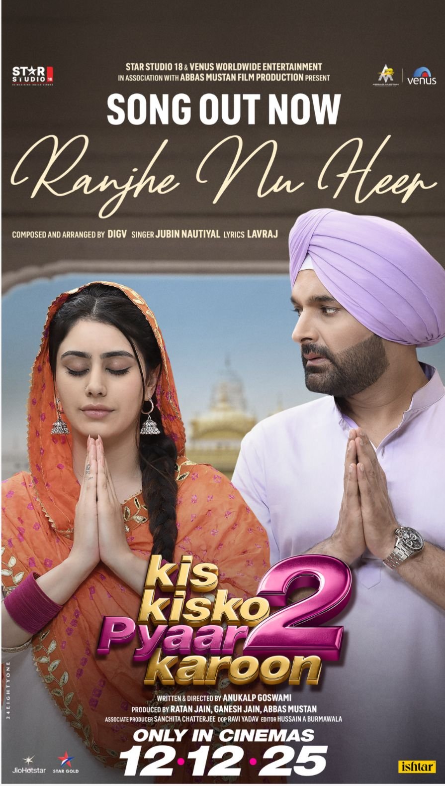 किस किसको प्यार करूं 2 के मेकर्स ने एल्बम का पांचवां और आख़िरी गाना रिलीज़ कर दिया है। इस बार तो खास सरप्राइज़ है, रोमांटिक फेवरेट ‘रांझे नू हीर’ का अनप्लग्ड वर्ज़न, जिसे खुद कपिल शर्मा ने अपनी आवाज़ दी है। इस नए अंदाज़ ने पहले से पसंद किए जा रहे गाने में इमोशन्स की एक और गहराई जोड़ दी है।फिल्म का म्यूज़िक एल्बम इसकी सबसे मज़बूत ताकत बनकर उभरा है, जहां हर गाना सीधे दिल से कनेक्ट करता दिखा है और श्रोताओं की प्लेलिस्ट का हिस्सा बन चुका है। इसी म्यूज़िकल सक्सेस को आगे बढ़ाते हुए, अनप्लग्ड वर्ज़न गाने को और भी निजी, सादा और दिल से निकला हुआ एहसास देता है, जो एल्बम के फिनाले को खास बना देता है।