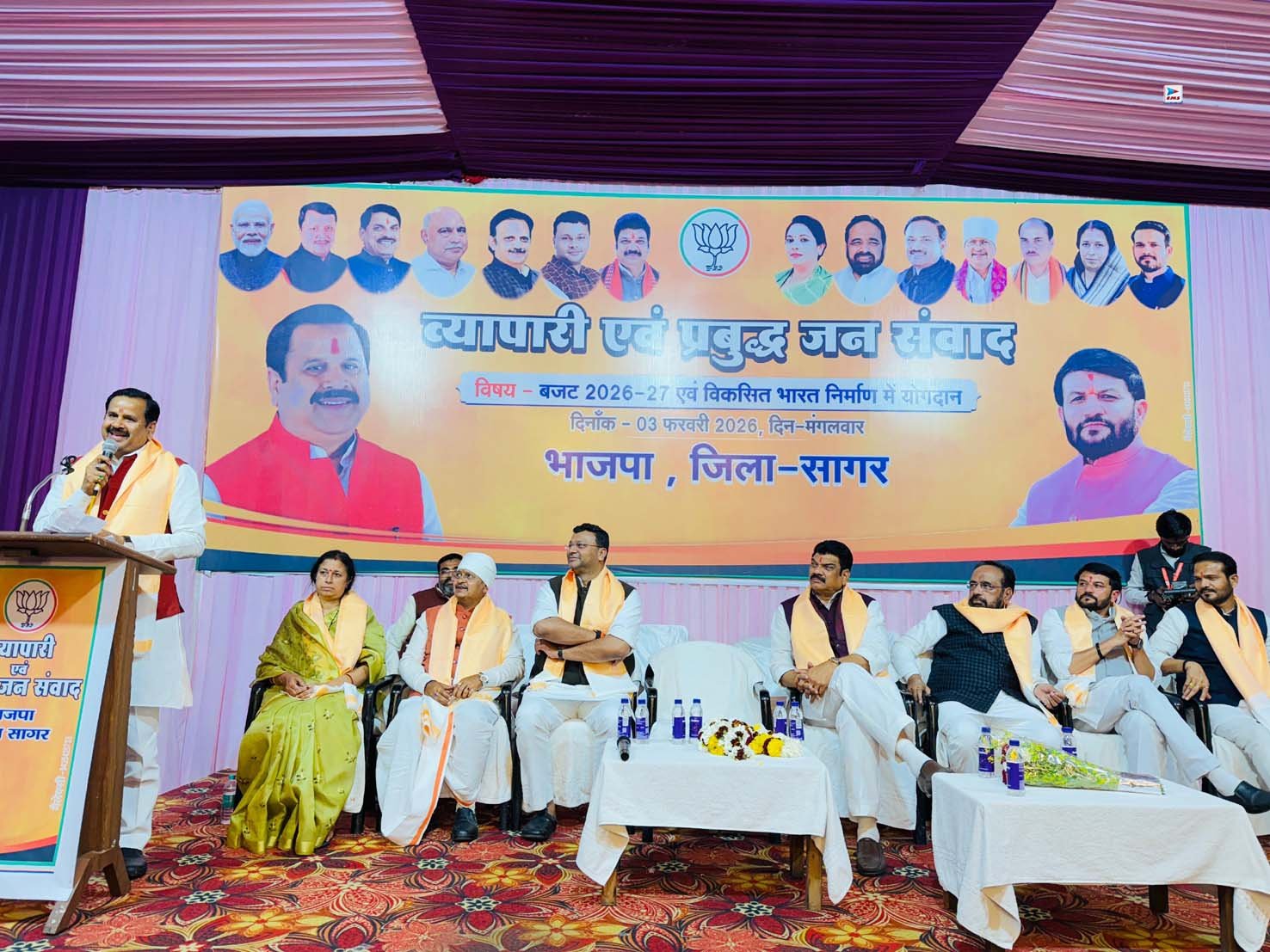भोपाल/सागर । भारतीय जनता पार्टी के प्रदेश प्रभारी डॉ. महेन्द्र सिंह ने मंगलवार को सागर जिले के होटल वरदान में केंद्रीय बजट-2026 को लेकर आयोजित व्यापारी व प्रबुद्धजन संवाद कार्यक्रम को संबोधित करते हुए कहा कि प्रधानमंत्री नरेन्द्र मोदीजी के नेतृत्व में समग्र भारत के चतुर्दिक विकास का बजट प्रस्तुत किया है। केंद्रीय बजट 2026 देश की जनता के प्रति सरकार के कर्तव्यों को पूरा करने वाला डॉक्यूमेंट है। प्रधानमंत्री जी के नेतृत्व में 240 कल्याणकारी योजनाओं के साथ केंद्र सरकार देश की 145 करोड़ जनता के हितों के लिए कार्य कर रही है। उन्होंने कहा कि आजाद भारत के बाद यह पहला बजट है जब कर्तव्य भवन में बैठकर तीन कर्तव्यों वाला बजट बनाया गया है। कार्यक्रम को प्रदेश शासन के मंत्री गोविन्द सिंह राजपूत, पूर्व मंत्री व विधायक गोपाल भार्गव, विधायक शैलेन्द्र जैन एवं जिला अध्यक्ष श्याम तिवारी ने भी संबोधित किया। इस दौरान पार्टी के प्रदेश महामंत्री गौरव रणदिवे मंचासीन रहे।