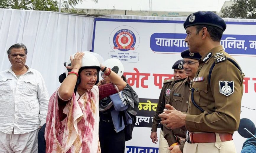 - नियम तोड़ने पर पहले चालानी कार्रवाई, फिर सुरक्षा हेतु हेलमेट भेंट।