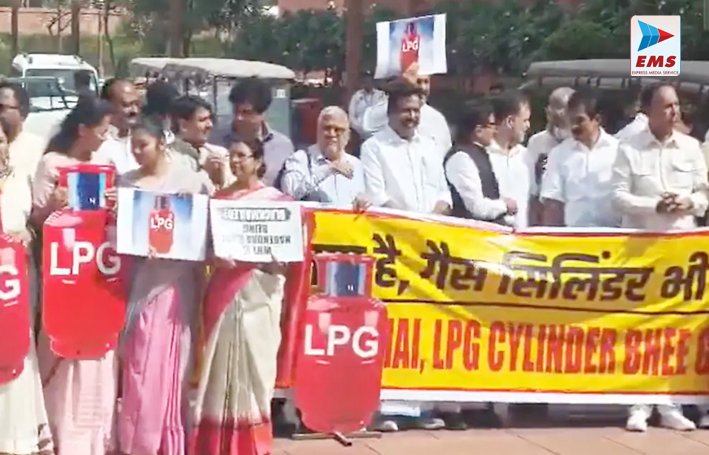 संसद परिसर में विपक्षी सांसदों ने गैस सिलेंडर संकट को लेकर सरकार के खिलाफ जोरदार प्रदर्शन किया। इस प्रदर्शन में कांग्रेस सांसद और लोकसभा में विपक्ष के नेता राहुल गांधी सहित कई विपक्षी सांसद शामिल हुए। सांसदों ने बैनर के साथ ही हाथों में तख्तियां लेकर और नारे लगाकर सरकार पर निशाना साधा। इस दौरान “नरेंदर भी गायब, सिलेंडर भी गायब” के नारे संसद परिसर में गूंजते रहे।