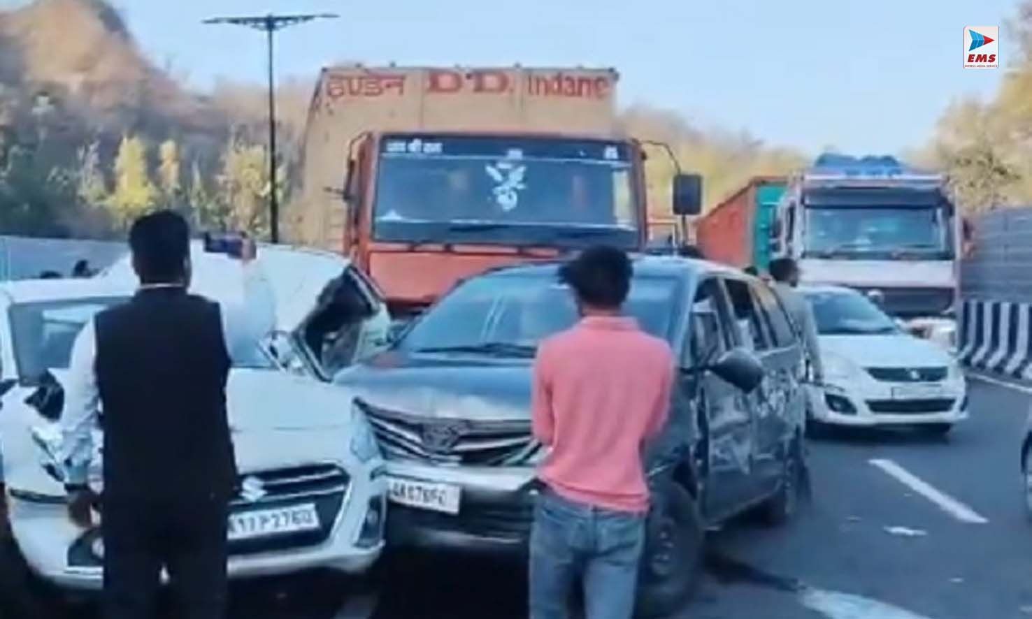 सहारनपुर । उत्तर प्रदेश के सहारनपुर जिले में स्थित दिल्ली-देहरादून एक्सप्रेस-वे पर एक बड़ा सड़क हादसा सामने आया है। थाना बिहारीगढ़ क्षेत्र के अंतर्गत मोहंड रेंज में तेज रफ्तार के कारण सात वाहन आपस में टकरा गए। यह दुर्घटना इतनी भीषण थी कि कई गाड़ियां बुरी तरह क्षतिग्रस्त हो गईं और मौके पर चीख-पुकार मच गई। बताया जा रहा है कि अचानक ब्रेक फेल होने और अनियंत्रित गति की वजह से एक के बाद एक वाहन आपस में भिड़ते चले गए।